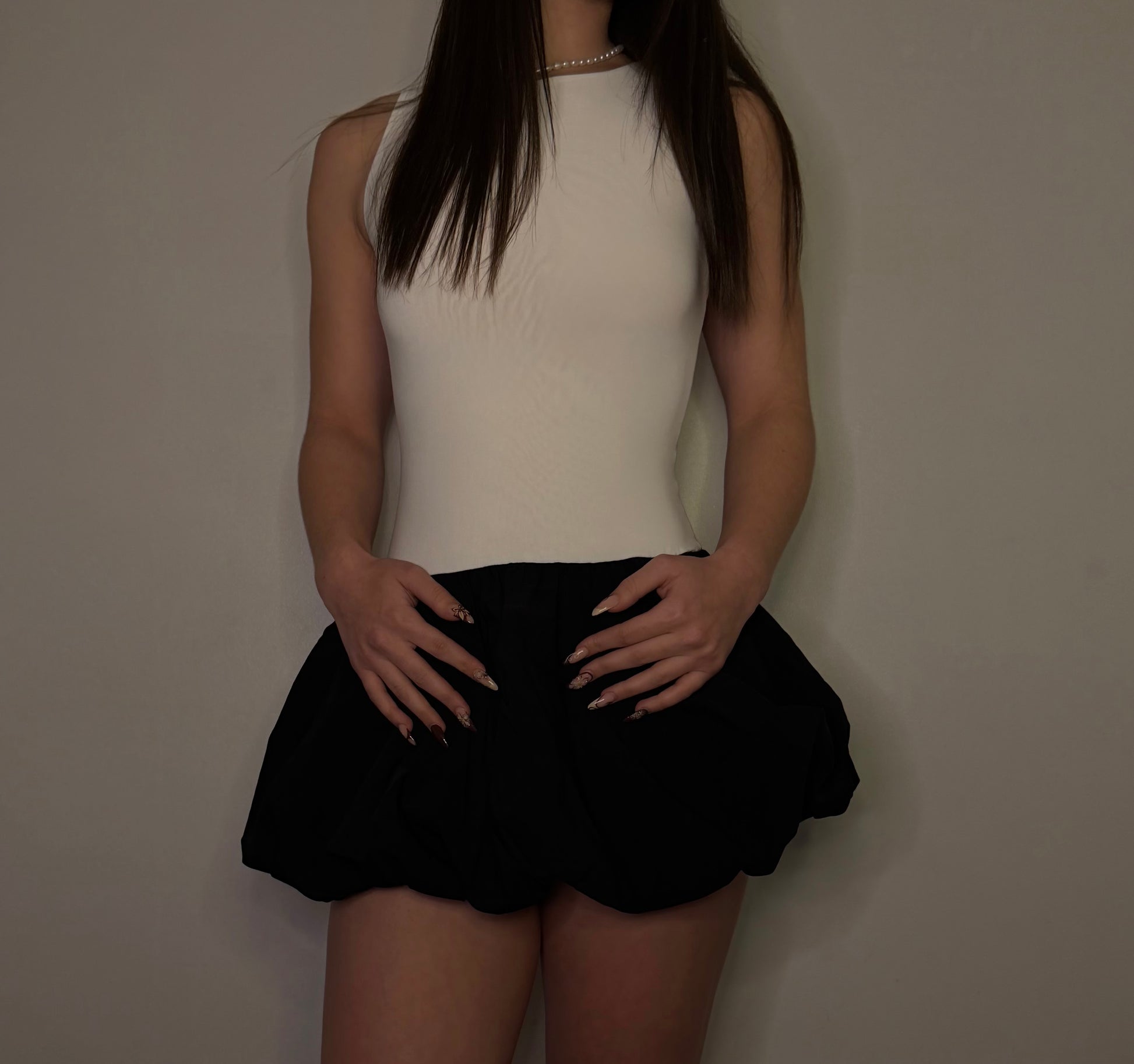 Turn heads in our Slinky Puffed Hem Mini Balloon Dress — the perfect blend of sleek and statement. Featuring a smooth, slinky fitted top that hugs the body beautifully, this mini dress flows into a playful balloon-style skirt with a puffed hem for added volume and movement.